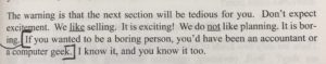 Your future coworkers will just think you’re an idiot for taking the time to write all that self-promoting stuff down.
